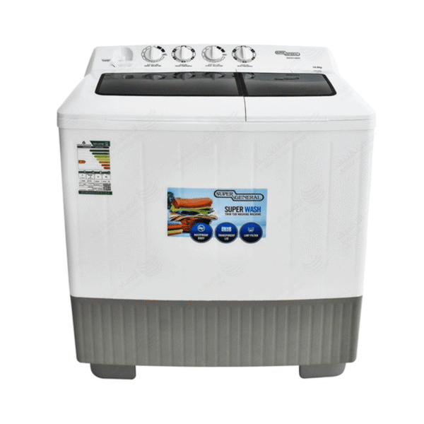 The KSGW1286 N 12 kg Super General Double Basin Washing Machine offers a perfect solution for your daily laundry requirements. This washing machine comes in a sleek white color design, making it a great addition to any kitchen. It is capable of handling large quantities of clothes in one go, saving users time and effort. The washing machine has high speeds that ensure effective and deep cleaning, which helps keep clothes in good condition for as long as possible. With its 220V wattage, it can be relied upon in various conditions. It also offers a two-year warranty, reflecting the company's confidence in the quality of its product. This washing machine can be used in large homes or families that need constant laundry, as it solves the issue of piling up unwashed clothes. Choose a Super General Double Tub Washing Machine to make your laundry experience easier and more efficient in your daily life.