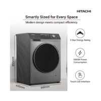 غسالة فول اوتومايك هيتاشى , تحميل امامي , 16 برنامج , 10.5 كجم غسيل ,7 كجم تجفيف, فضي- (BD-D1054HVOW)
