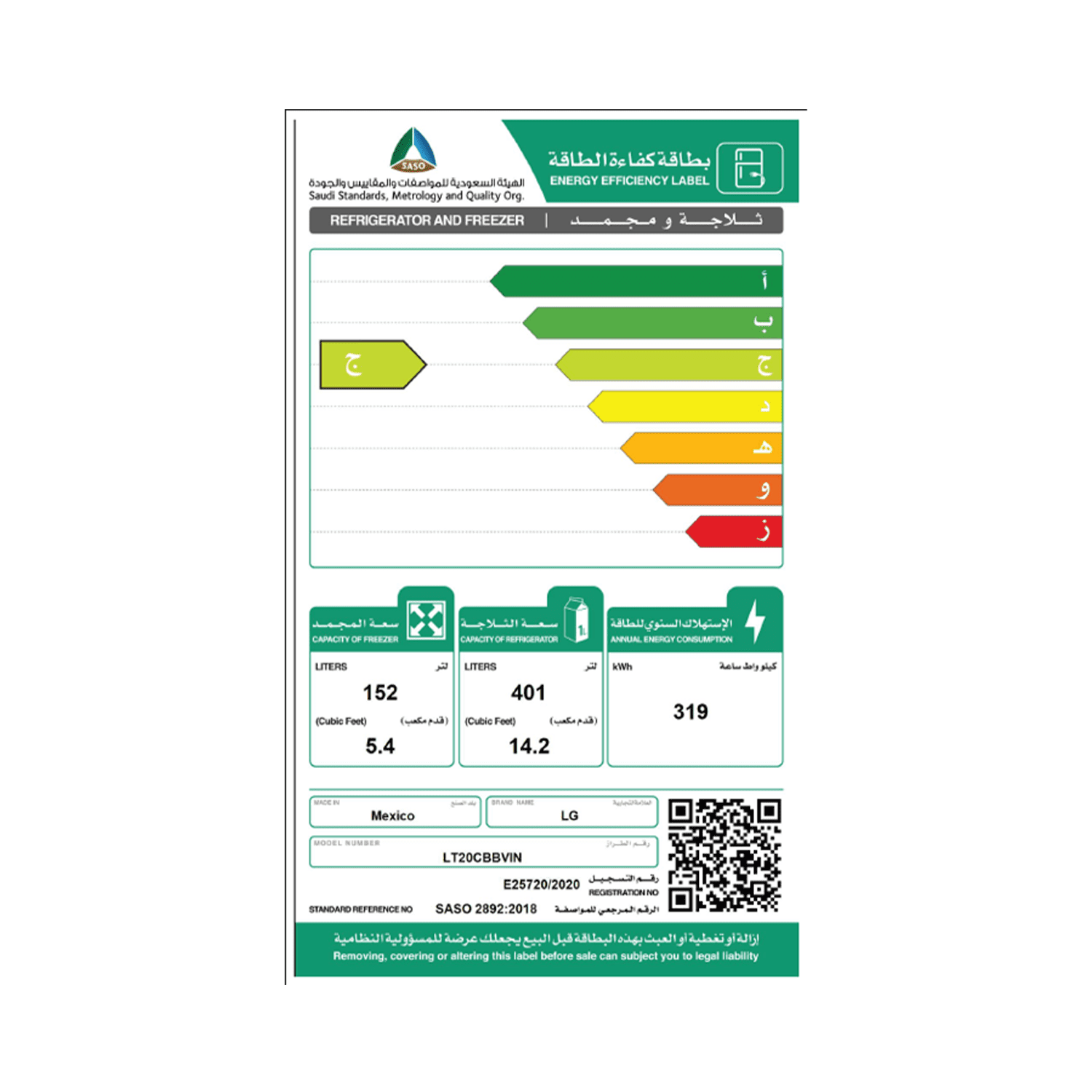 ثلاجة ال جي , انفرتر , 19.60 قدم مكعب , قدم , بابين , ستانلس ستيل