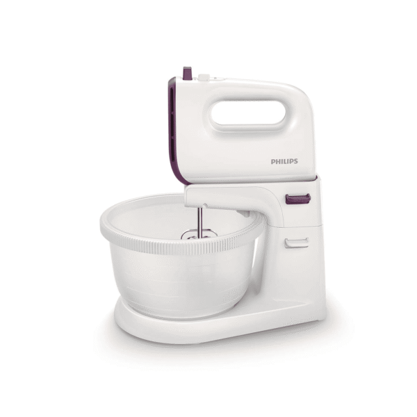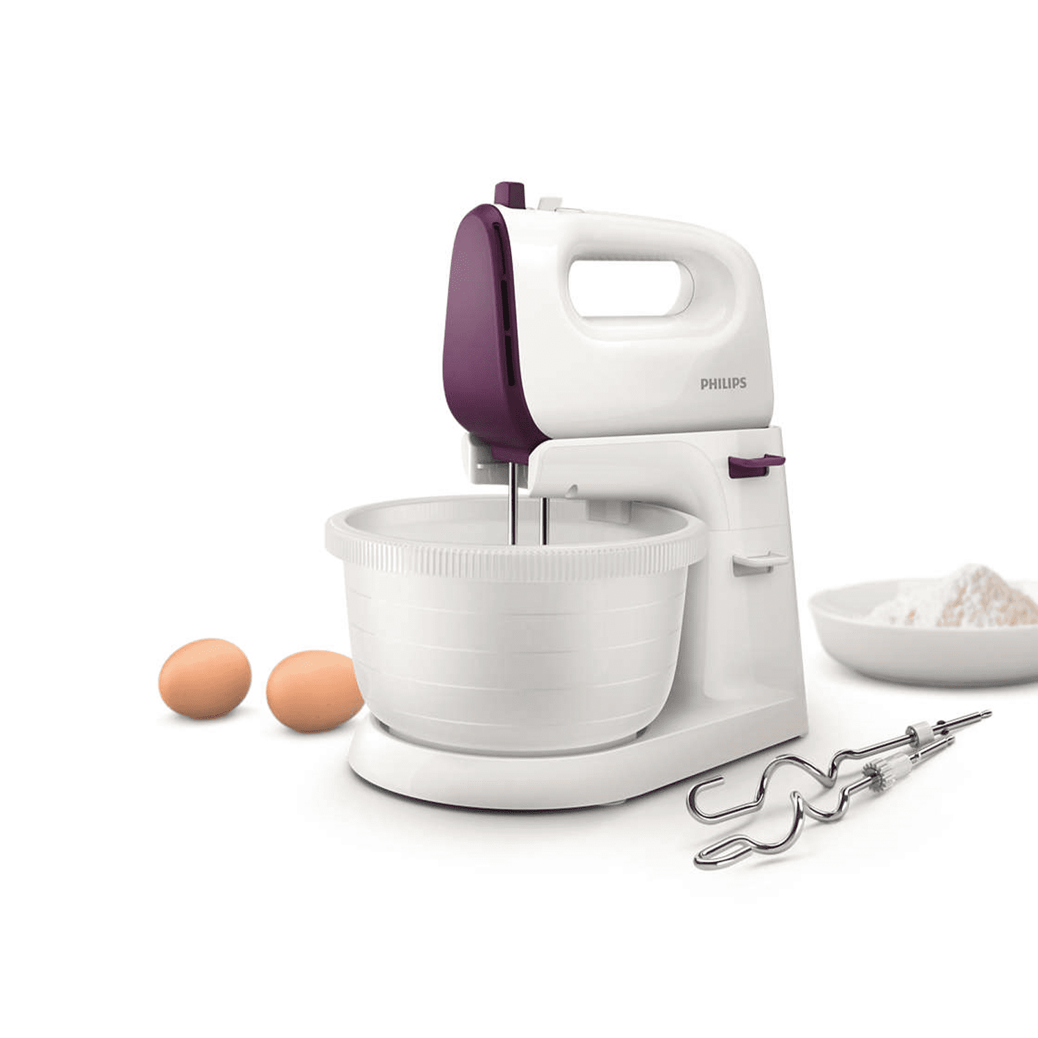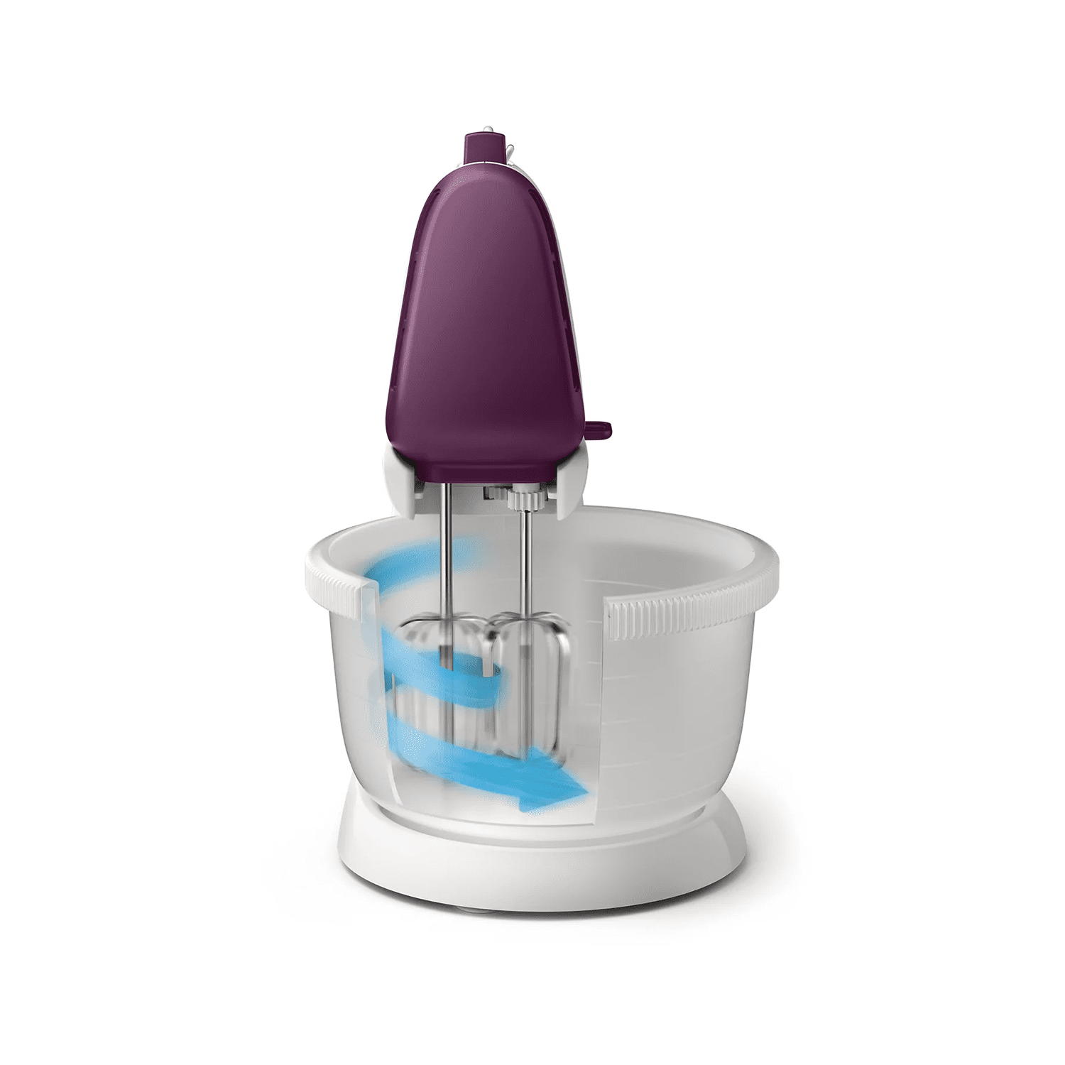 خلاط فيليبس مع وعاء , 5 سرعات + تربو , وعاء سعة 3 لتر , مضرب سلكي + خطافات عجين , 450 وات , بنفسجي