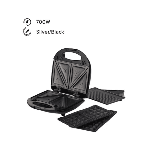 صانعة السندوتشات اي تي سي , 3 في 1, مؤشر ضوئي 700وات , فضي واسود