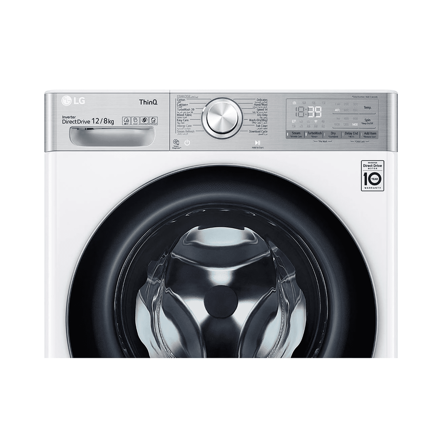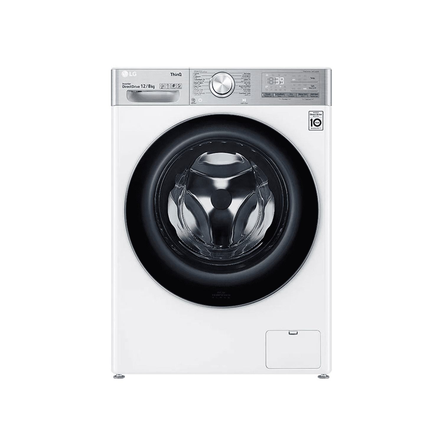 غسالة إل جي فول اوتوماتيك , تحميل أمامي , بخار, ماتور عاكس , واي فاي , غسيل تربو , 12 كجم - مجفف 8 كجم , ابيض