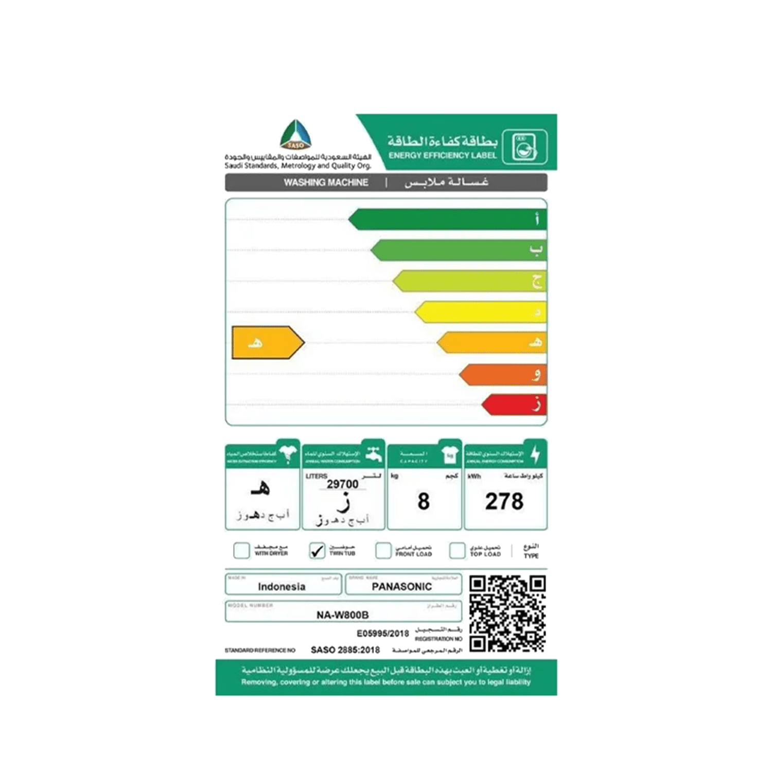 غسالة حوضين بناسونيك,8كجم,ابيض