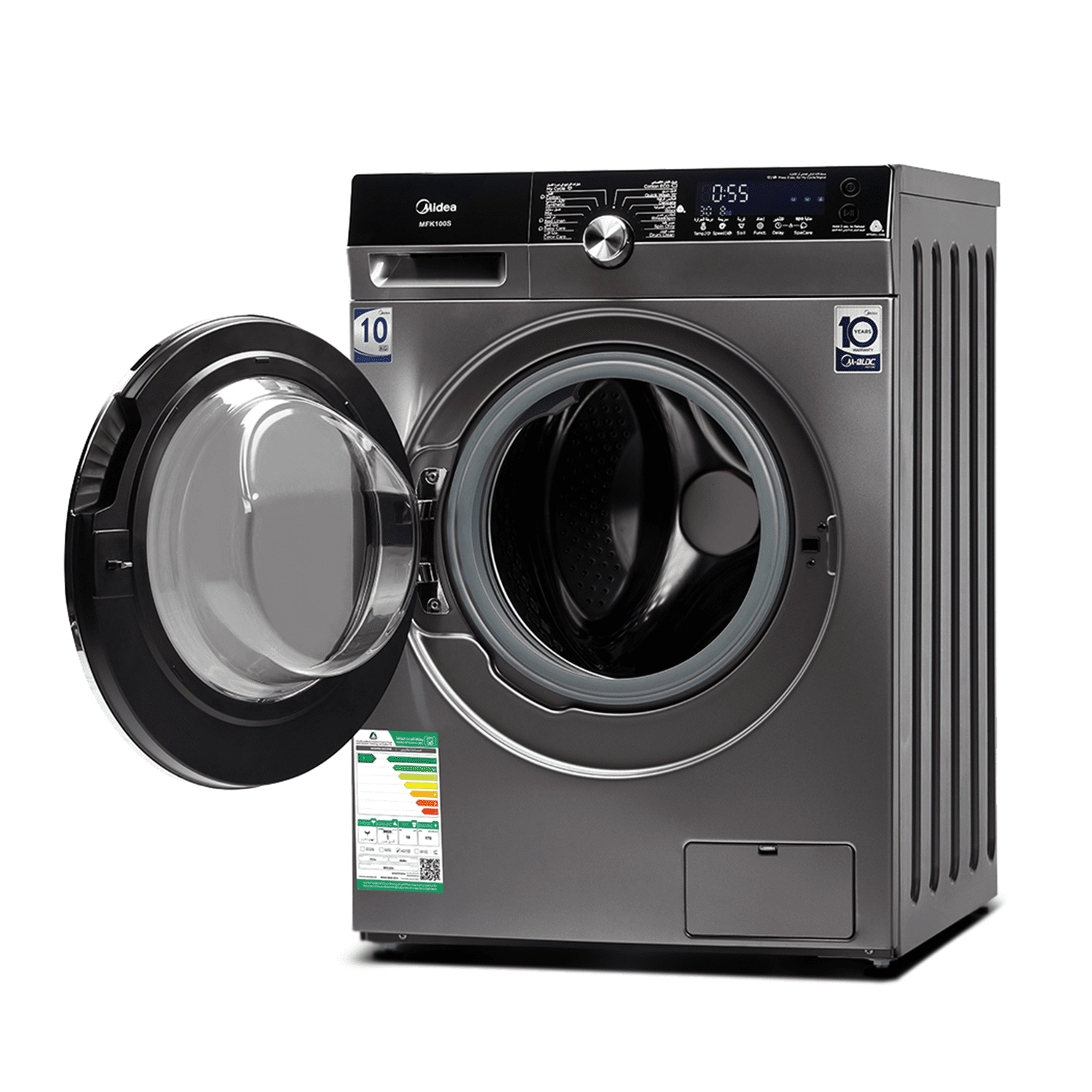 غسالة فول اوتومايك ميديا , تحميل امامي , انفرتر , 14 برنامج , 10كجم غسيل - 7كجم تنشيف , فضي