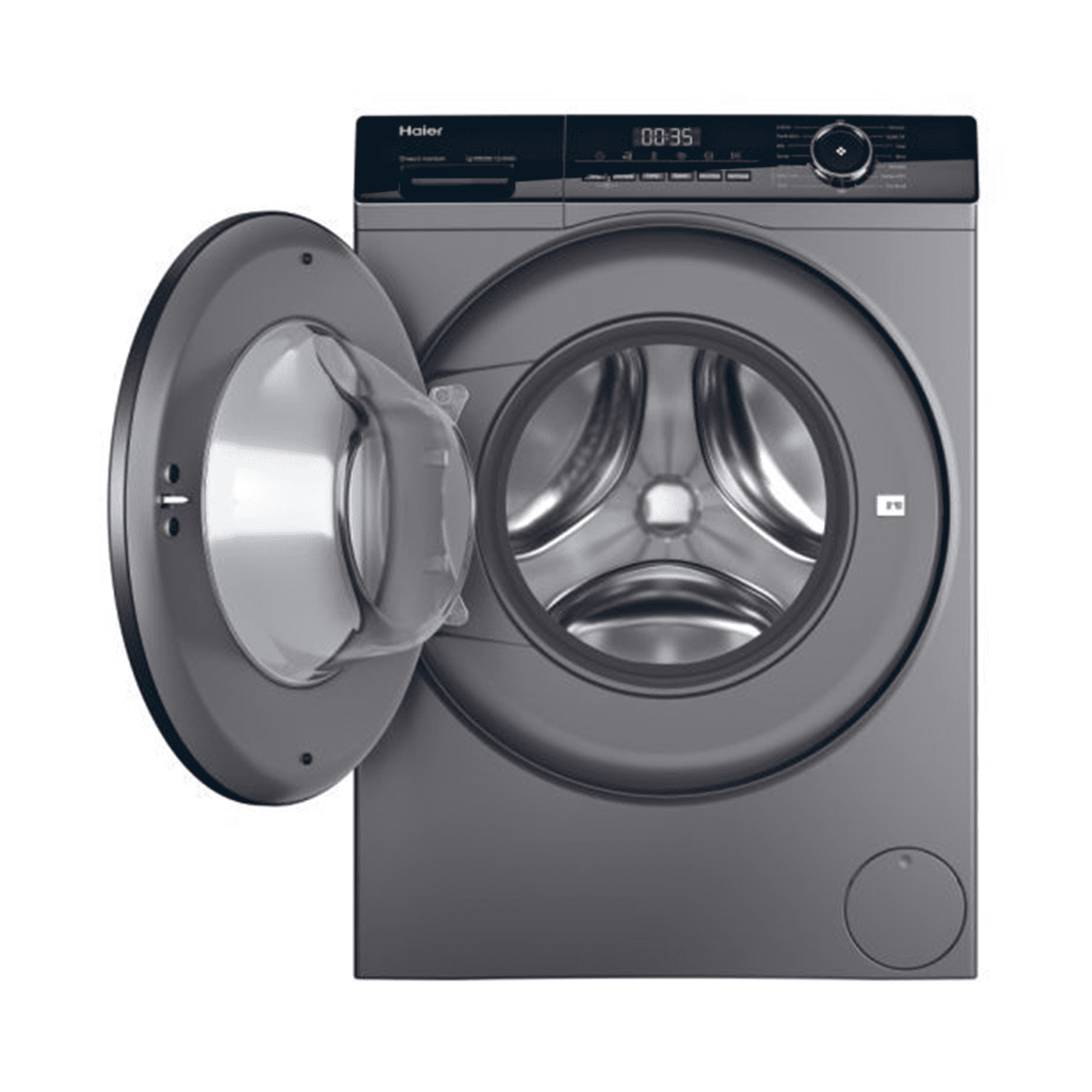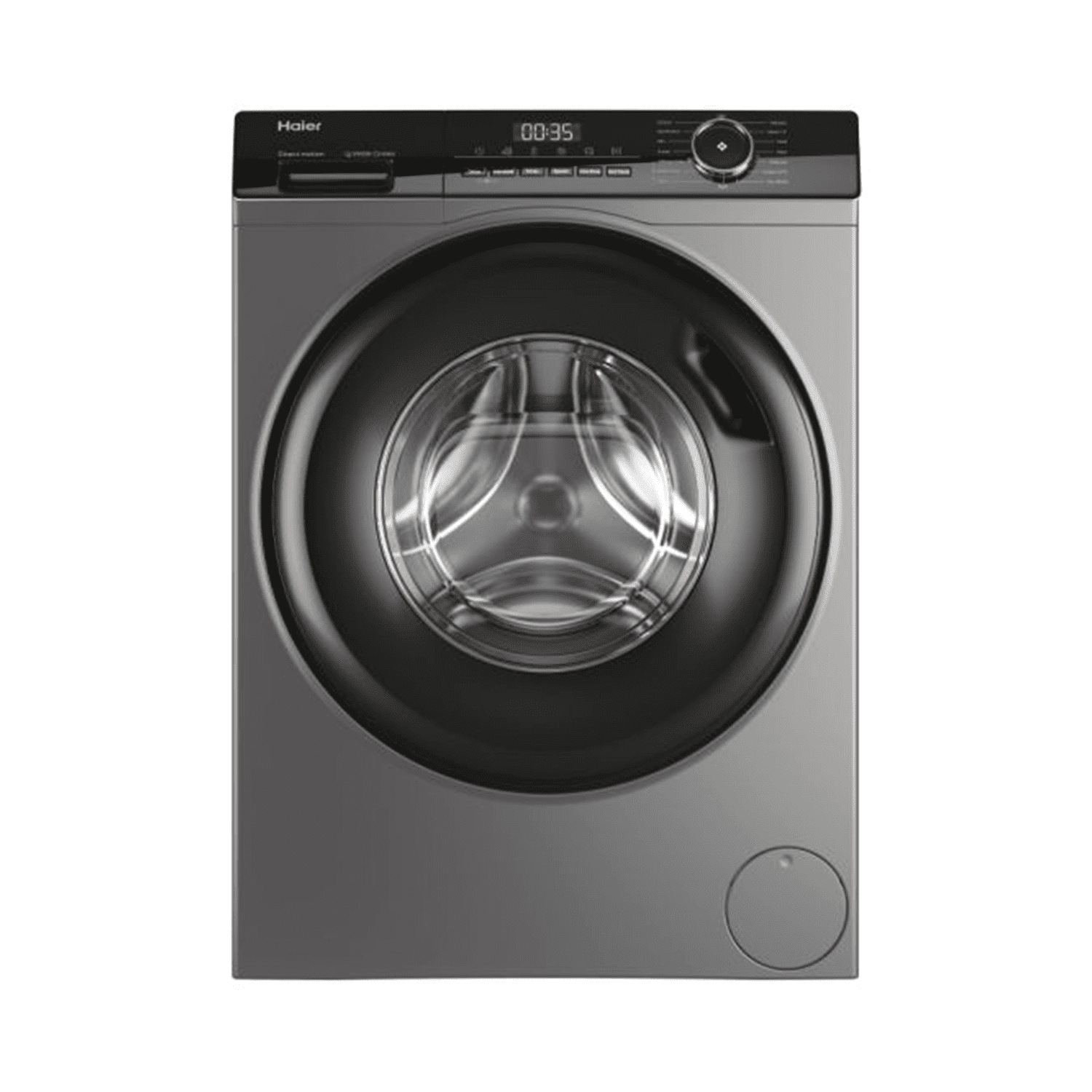 غسالة هاير أوتوماتيك , تحميل أمامي , ماتور عاكس , دوران مباشر , 10 كجم , 15 برنامج , فضي