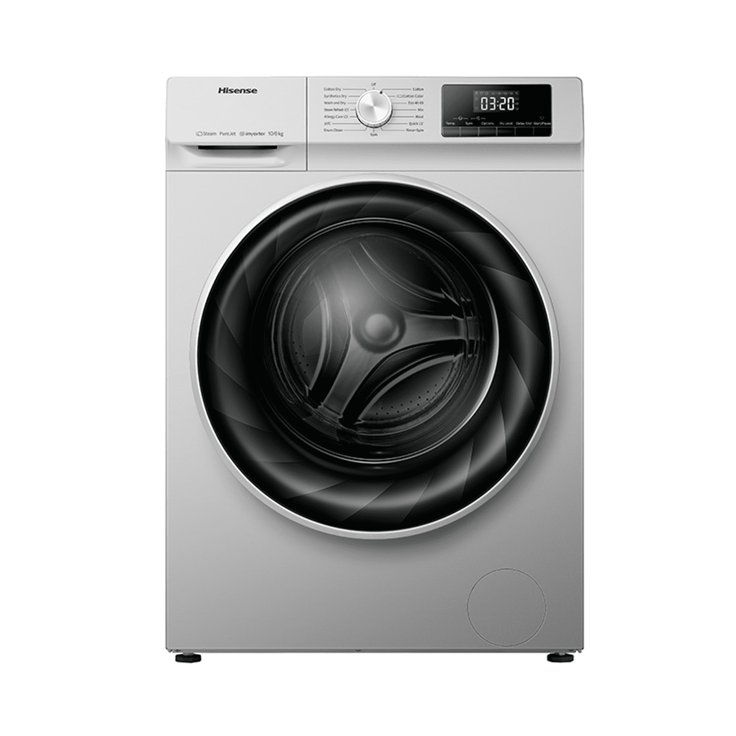 غسالة هايسنس فول اوتوماتيك , تحميل أمامي , بخار , ماتور عاكس , غسيل 10 كجم - مجفف 6 كجم , ابيض