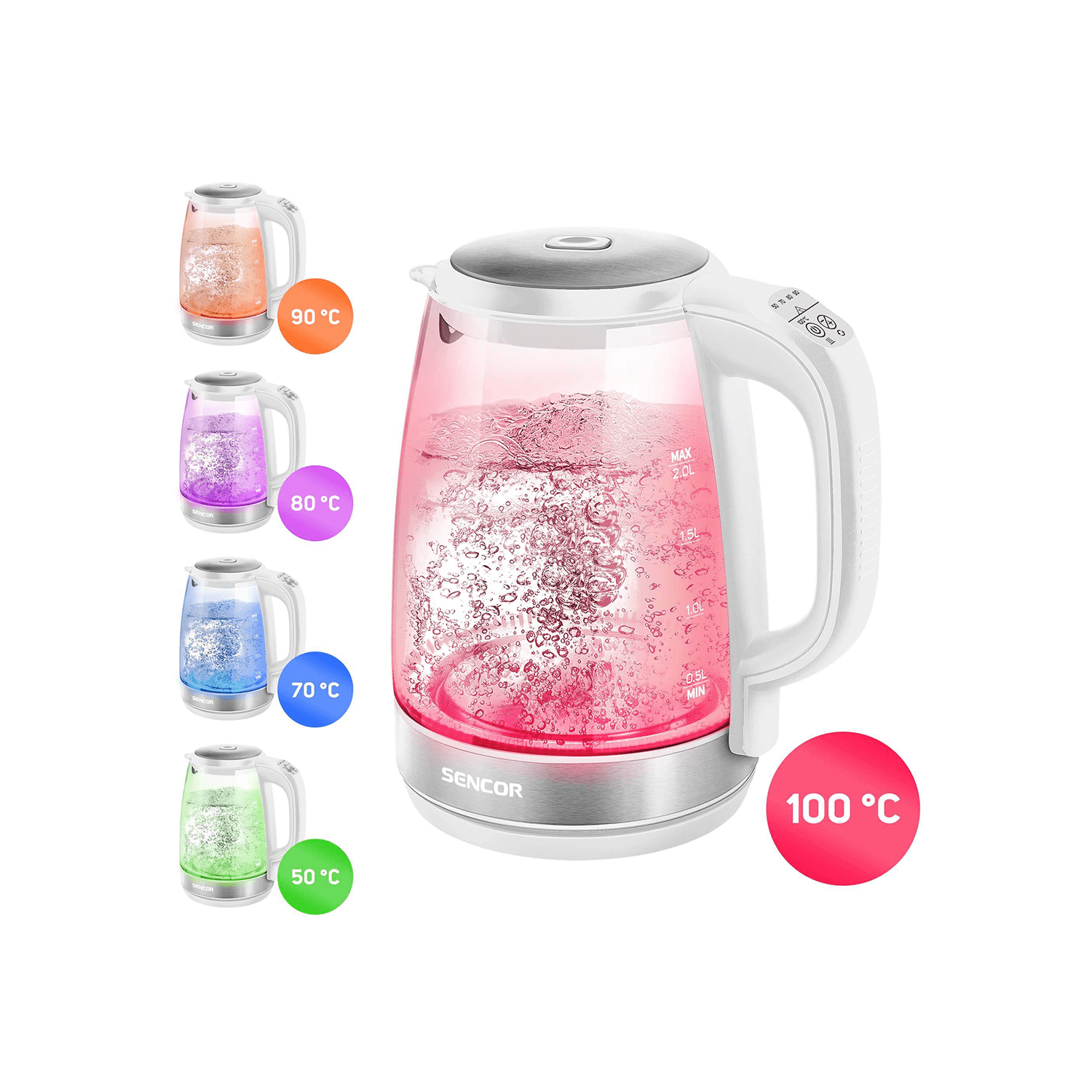 غلايه كهربائية زجاج سينكور , 2 لتر , 5 مستويات تسخين الكتروني , مؤشر ضوئي لمستويات الحرارة , 2200وات