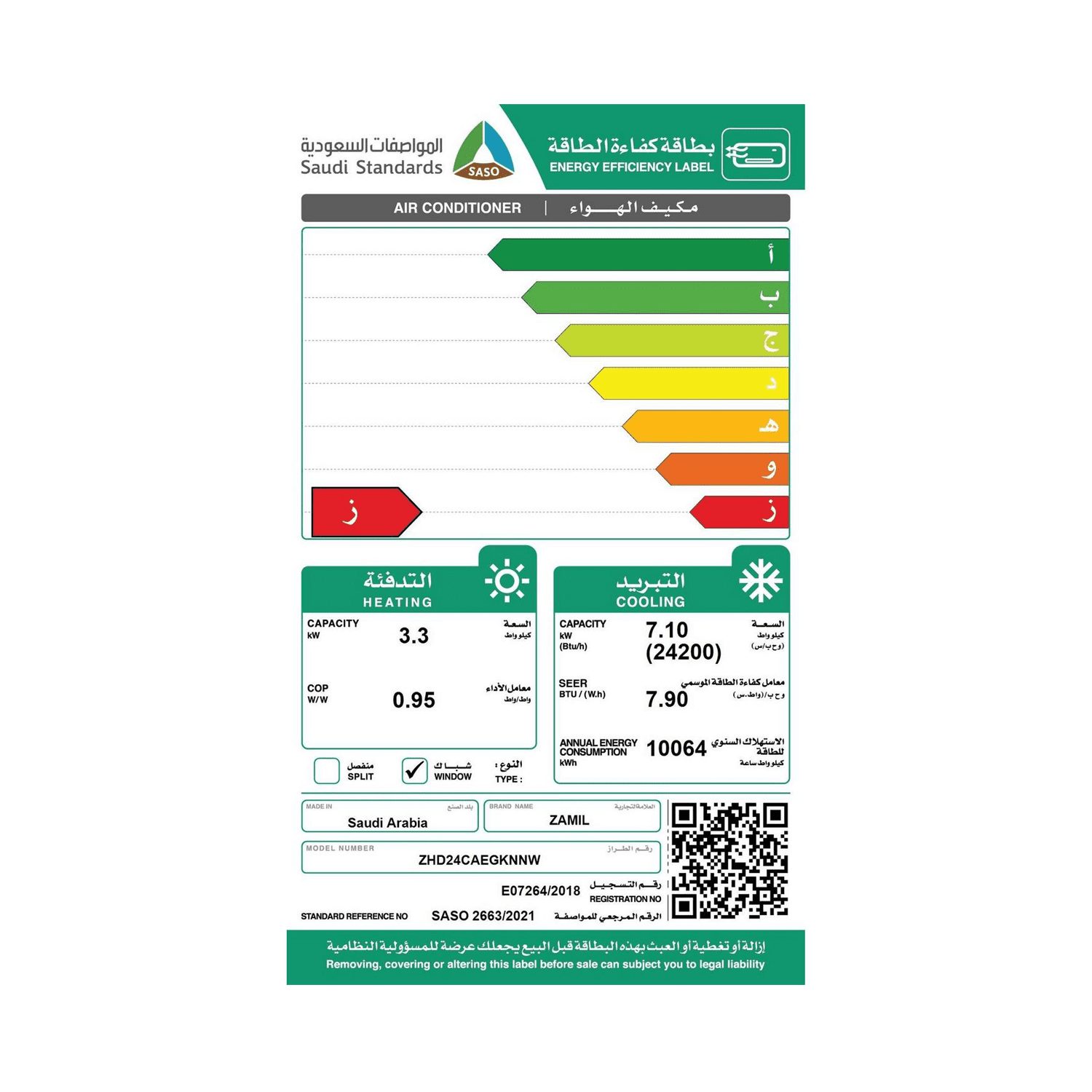 مكيف شباك الزامل,حار-بارد,روتاري,24200وحدة - ZHD24CAEGKNNW