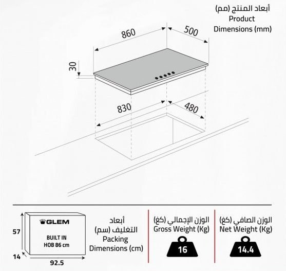 | الأبعاد | 51 × 86 × 4 سنتيميتر |