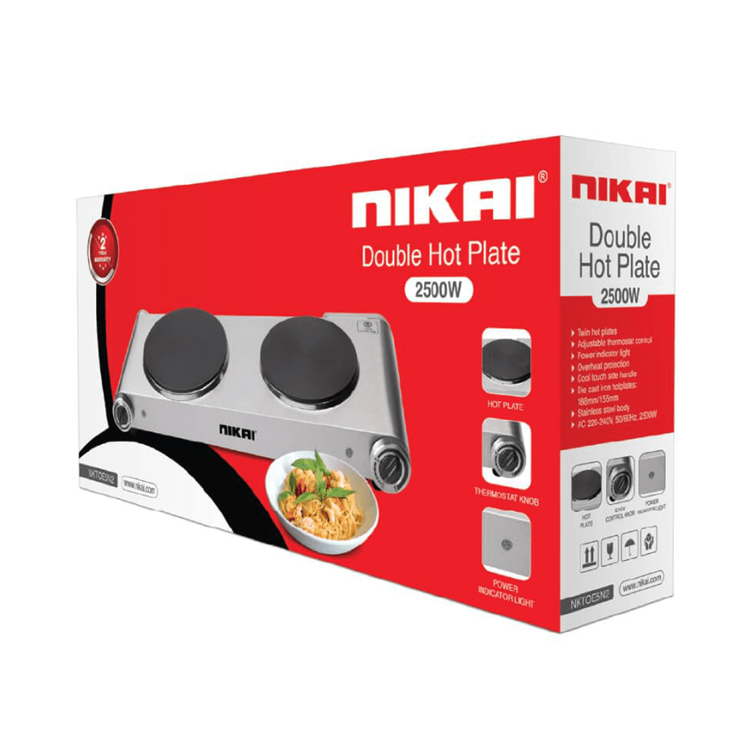 موقد كهربائي نيكاي , 2 عيون , 1900-2500 وات , ستيل