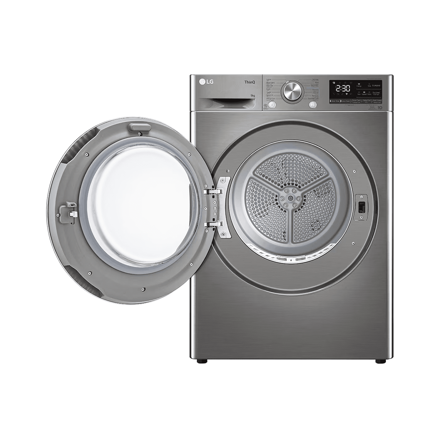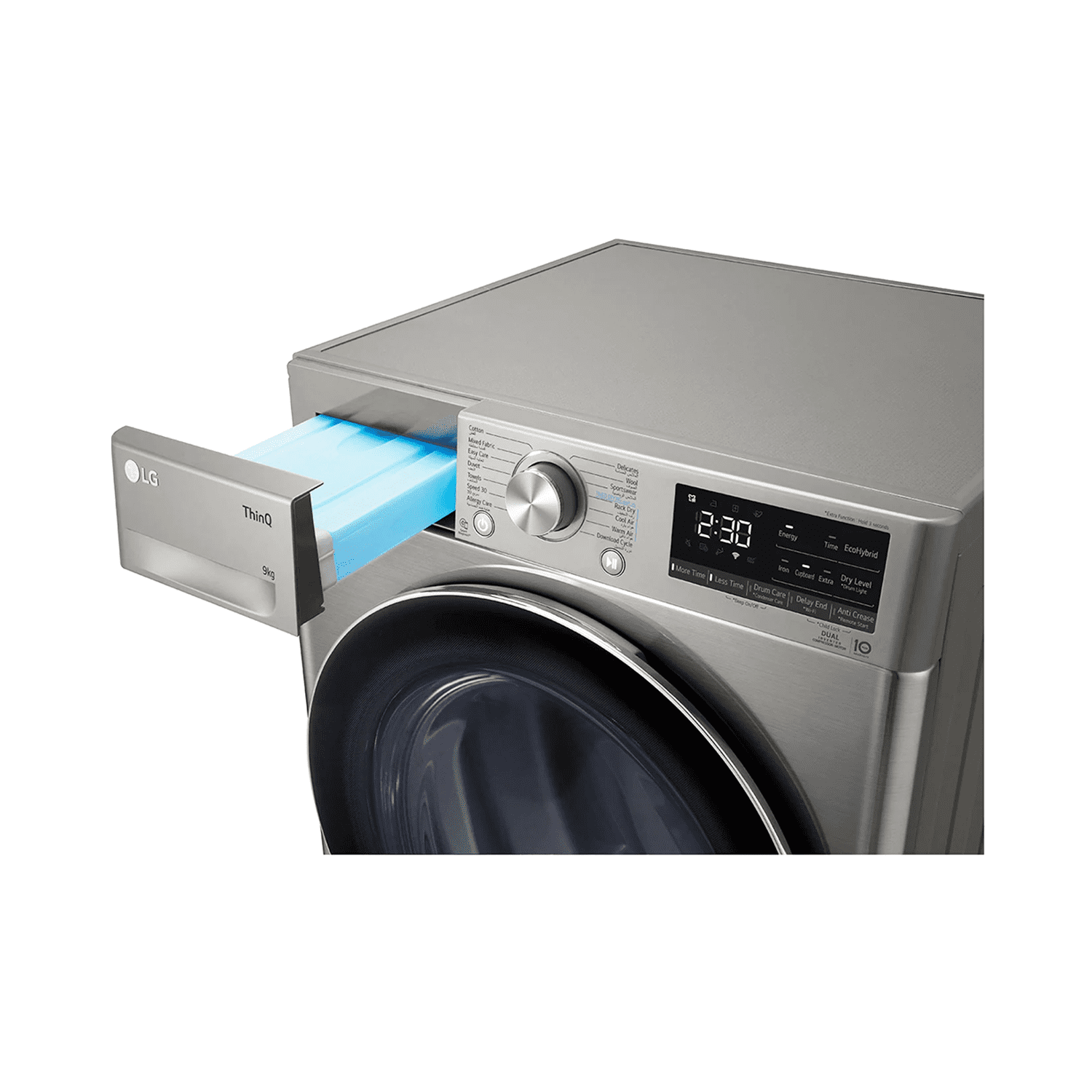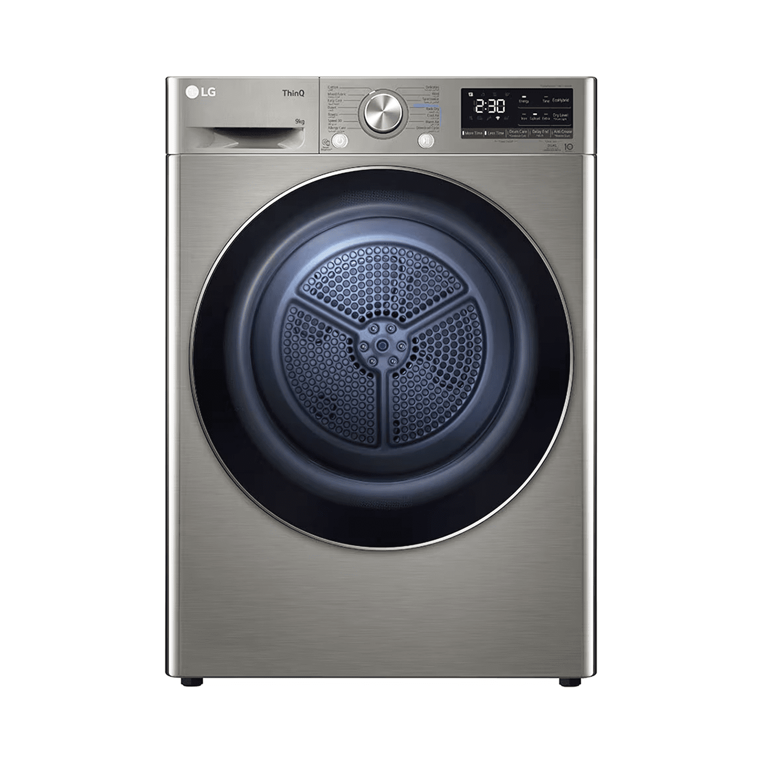 نشافة ال جي , تحميل امامي , تكثيف , 10 كيلو , ماتور عاكس مزدوج , مضخة حرارية , واي فاي, فضي بلاتيني