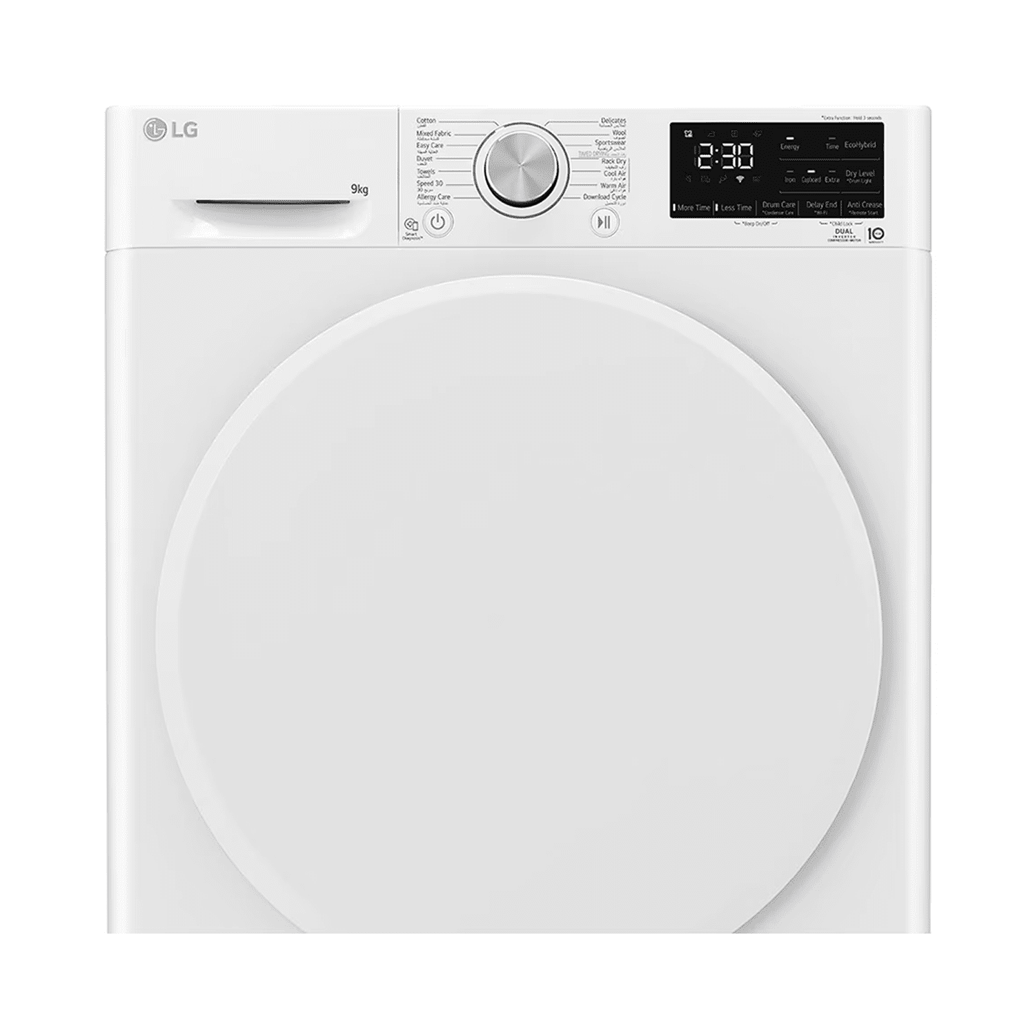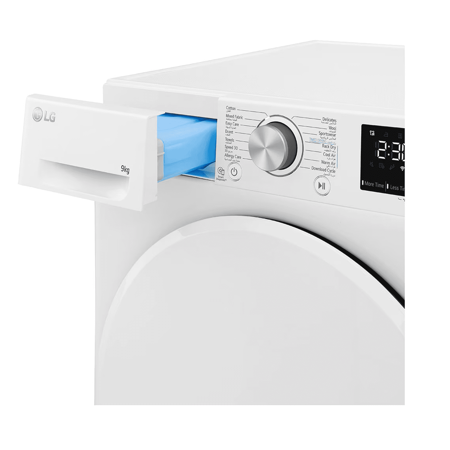 نشافة ال جي , تحميل امامي , تكثيف , 9 كيلو , ماتور عاكس مزدوج , مضخة حرارية , واي فاي , ابيض