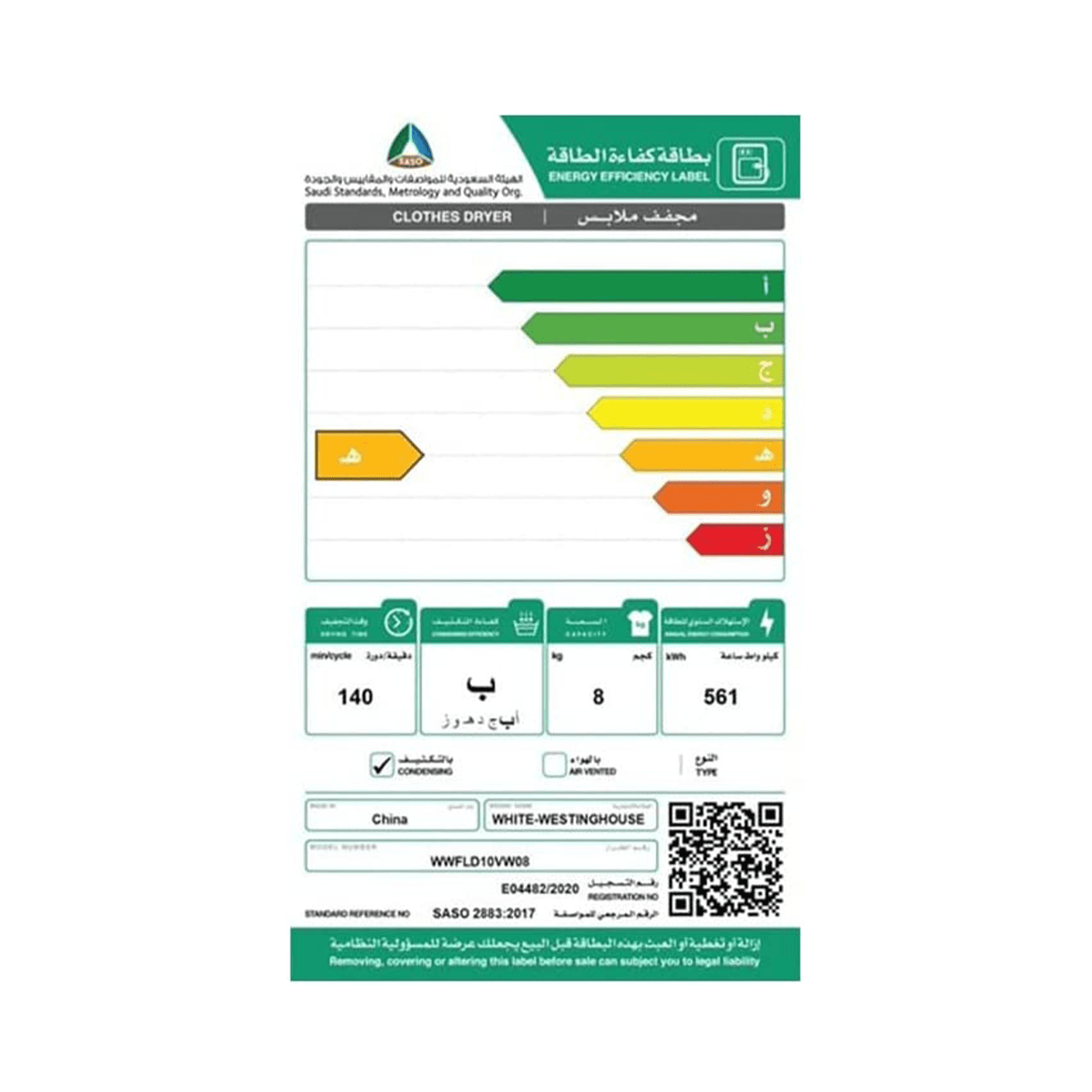 نشافة وايت ويستنجهاوس , تكثيف , تحميل امامي , 8كجم , ابيض