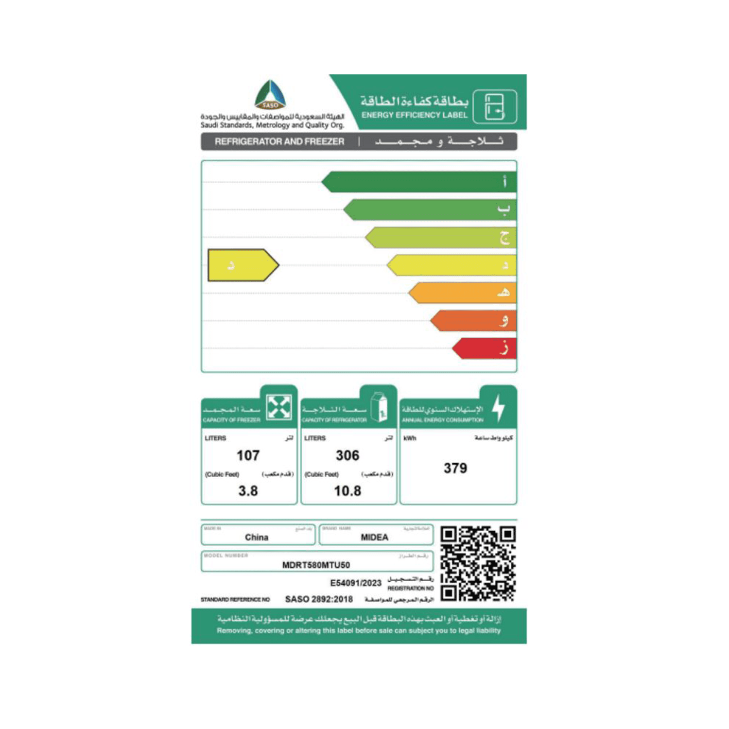 ثلاجة ميديا , انفرتر , 14.6 قدم مكعب