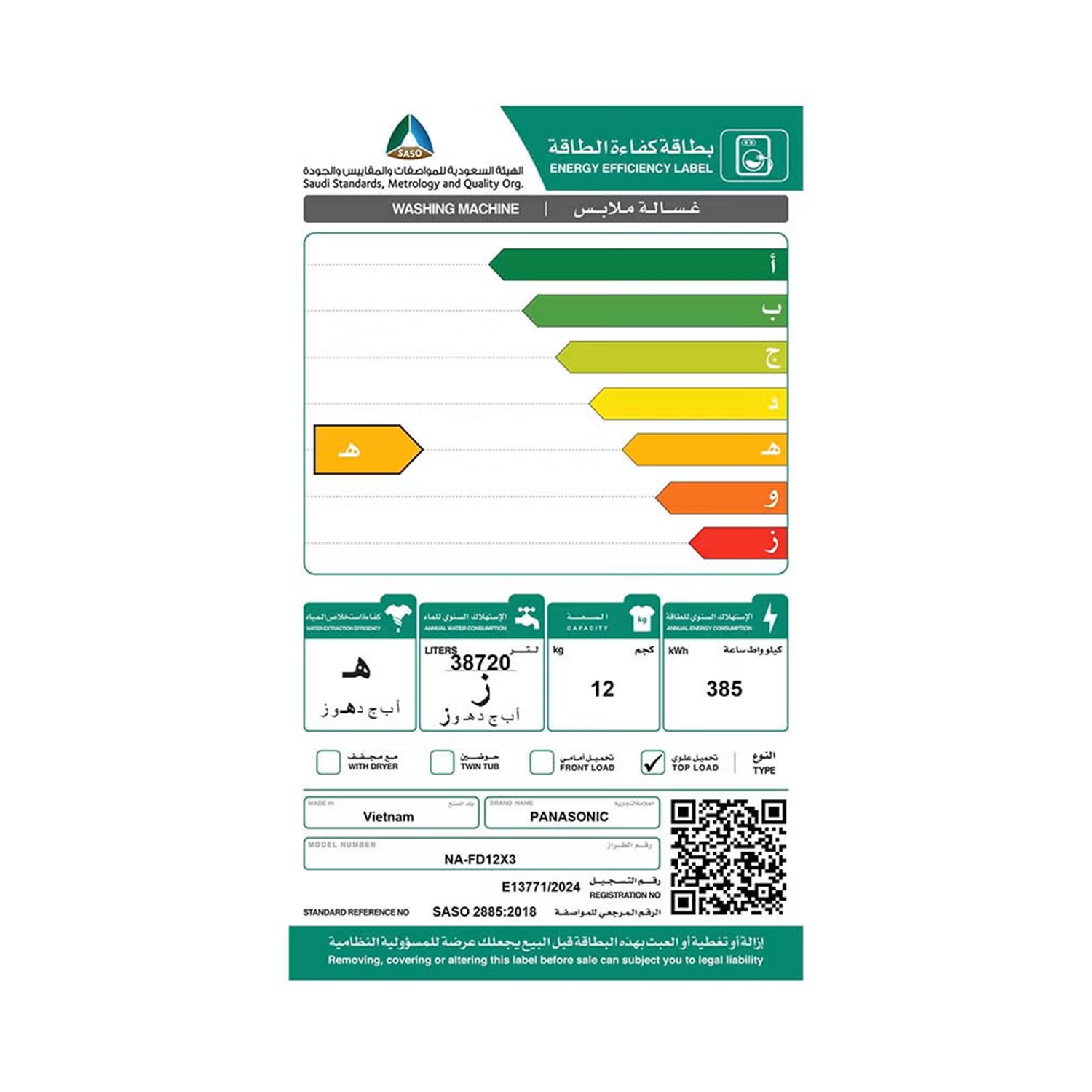 غسالة فول اوتومايك باناسونيك, تحميل علوي, انفرتر, 12كجم ,رمادي