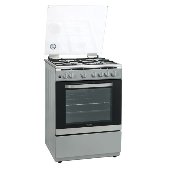 فرن غاز فيستل , 4 عيون, 60*60 سم , نوع موقد مينا , امان كامل , ستيل