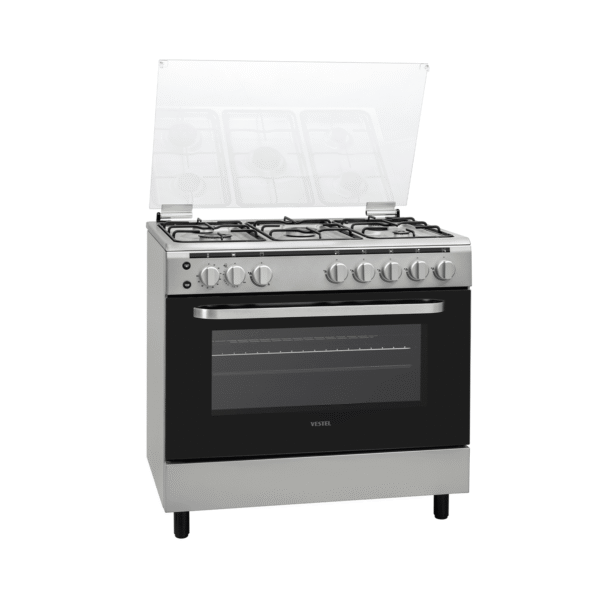 فرن غاز فيستل , 5 عيون, 60*90 سم , نوع موقد مينا , امان كامل , ستيل